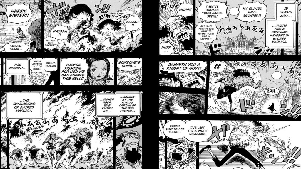 One Piece chapter #1167 expanded on Fisher Tiger breaking into Mary Geoise to free slaves, and it did so by revealing that Shanks, now a Devoted Blade of God, broke him out of his chains and directed him to the armory, and that made people believe that One Piece retconned Tigerโs story so that he was simply always a slave.