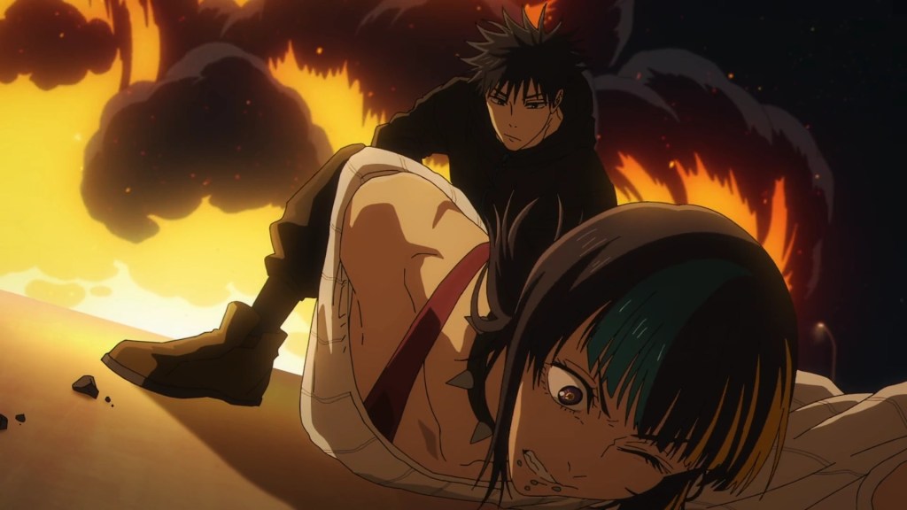 Some might see this as something of a cheat, considering it could be broken down into the individual fights that take place within the Sendai Colony. Since the fights continuously spill into one another, it seems far easier to list this as one giant battle royale, with Yuta Okkotsu caught in the middle. The four combatants here range from a space-manipulating ancient to a cockroach demon to a hairdo-sporting energy wielder to the Shikigami summoner, with each getting their chance to shine. Yuta’s final fight of season three will go down in history as one of the greatest anime fights of all time, and it’s almost impossible to say otherwise. The Sendai Colony is the perfect crescendo to season three, employing the best aspects of Jujutsu Kaisen in one oversized package.