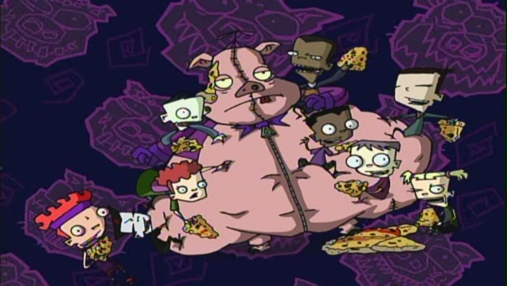 “Bloaty’s Pizza Hog” was the title of one of the segments of Invader Zim’s tenth episode in its first season, presenting the terrifying creature that functioned as something akin to Chuck E. Cheese in the Nickelodeon universe. With Dib’s sister, Gaz, wanting nothing more than to both eat pizza and meet Bloaty, she made it one of her life missions to make sure she would be able to visit the establishment. Dib and Zim’s ever-growing war with one another nearly threatens Gaz seeing Bloaty in person, but the episode ends with her dream coming true and the Membrane family chowing down on the pizza.