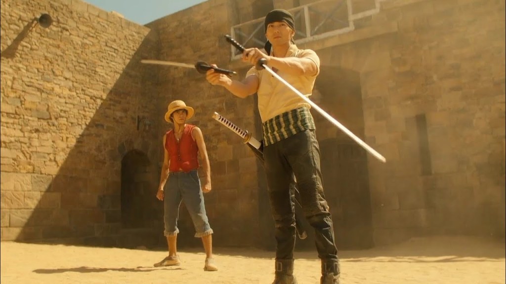 When the Straw Hat Pirates arrive in Whiskey Peak, they are greeted with a strange sight: a town that apparently has a fondness for the pirates sailing the Grand Line. Hailing them as heroes, Luffy and his friends get the chance to kick back, eat, and drink to their hearts’ desire, and be shown the respect they have yet to find once they hopped aboard the Going Merry. Thanks to a series of unfortunate events and hilarity, Luffy and Zoro come to blows in a moonlight fight that is sure to be a sight to behold in the live-action adaptation. Both the green-haired swordsman and the rubber swashbuckler have had their powers well displayed in the live-action series so far, and Netflix will have their work cut out for them in this season two brawl.