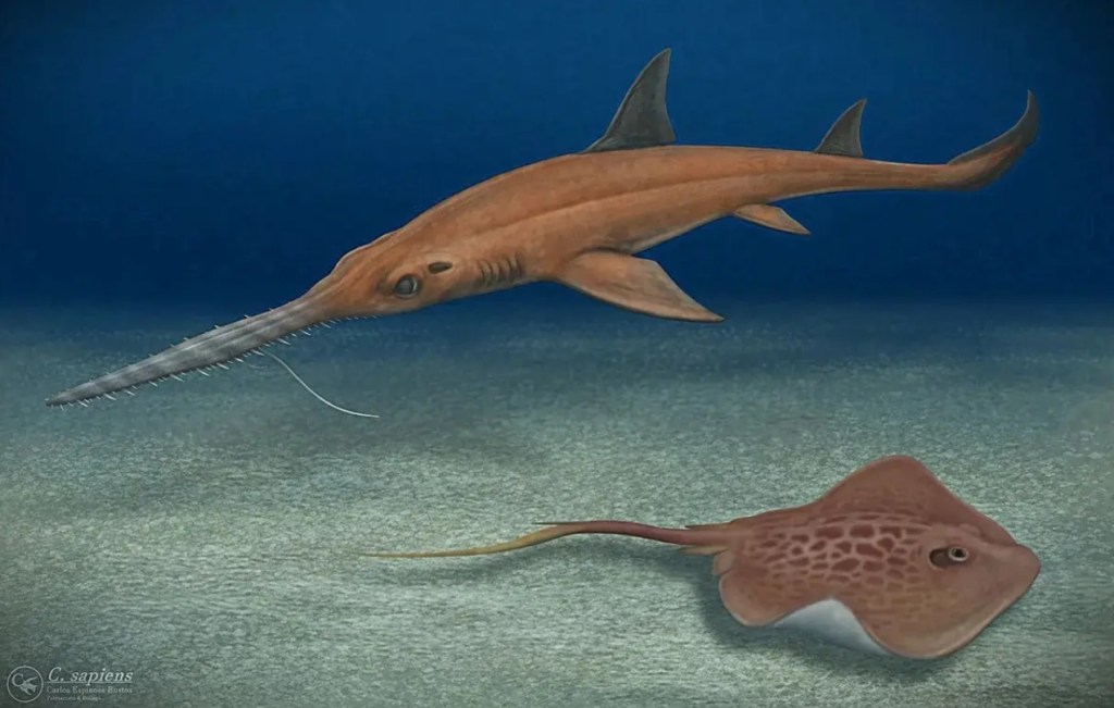 The abstract continues, “Here, 19 chondrichthyan taxa from the Upper Miocene of Bah ıa Inglesa are reported: five were identified at the species level, seven at the genus level, three at the family level, and four at the superorder level. Notably, this includes the first record of Sympterygia for the Americas, the first record of Dipturus for the Neogene, and the first mention of Rhinobatos for the Neogene of South America. At the species level, the first description of the basking shark Cetorhinus maximus for South America and the leopard shark Triakis semifasciata in any locality worldwide is provided. Additionally, a new species of ray from the genus Dasyatis and a new genus and species of sawshark from the family Pristiophoridae are proposed. In this research, we present the largest number of chondrichth-yan microremains collected and described from fossiliferous localities in Chile.”