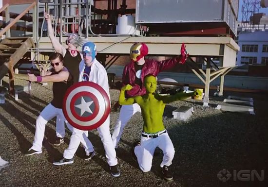 With five male superheroes and only one female superhero, The Avengers movie has spawned not one but two different boy band parody videos. The first Avengers boy band parody video was created by IGN, and the title of song is “Avenge You.” Nick Fury is listed as the producer. The song offers up such catchy lyrics as, “We’ve got all these super friends, and we’re in it until the end.” There is also a special cameo at the end by someone who was incorrectly rumored to have a cameo in The Avengers.
