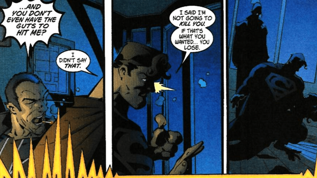Tragically, Injustice Superman fell for the Joker’s plan, brutally murdering the Clown Prince of Crime. Ending Battle at first seems to suggest that the original Man of Tomorrow will follow dark path similar to the one he takes in Injustice. As Superman weeps over Lois’s body while Black continues to mock him, the Man of Steel suddenly lashes out at Black in a blind rage. After an intense battle, Superman ultimately vaporizes Black with his heat vision. At first, it seemed that the paragon of virtue had finally given in to his darker desires and murdered his wife’s killer. However, in a shocking twist, it’s revealed that the entire battle had occurred only in Superman’s mind, and no harm had come to Black.