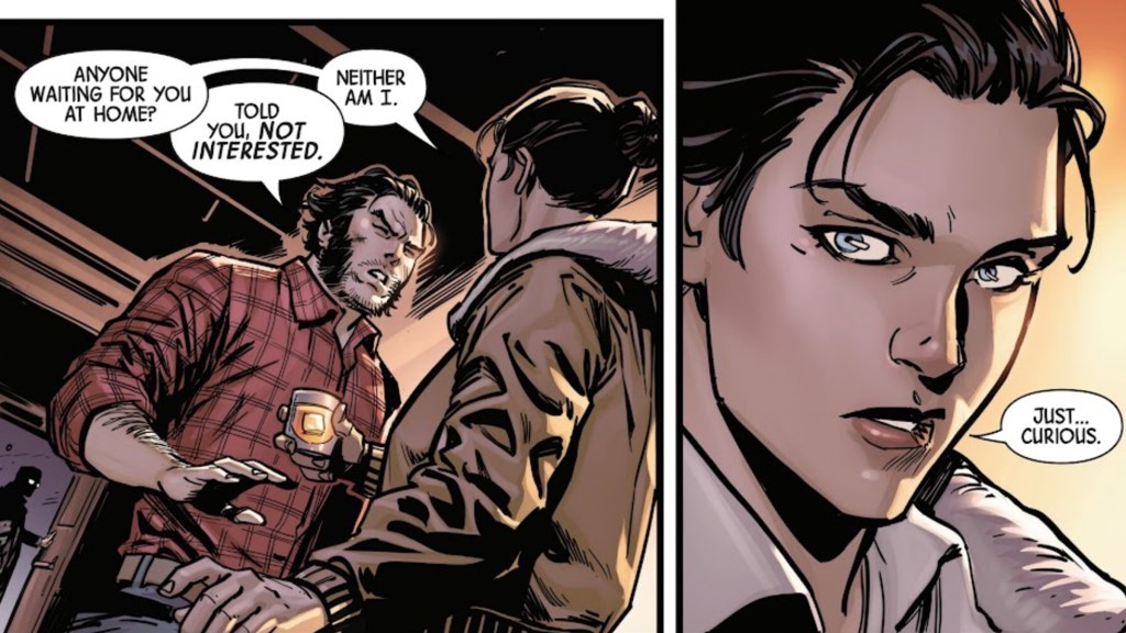 The prologue is a terse one, with Logan mistakenly thinking Teri is hitting on him. In reality, she’s watching him carefully, looking for evidence of his healing factor. She immediately notices how much he’s drinking and that he isn’t even “buzzed,” before spotting glass in Logan’s stubble and realizing he’s taken a bottle to the face during a bar-room brawl – but hasn’t even taken a scratch. These are the signs Teri has been looking for, confirmation that Logan is the ideal test subject for Weapon X.