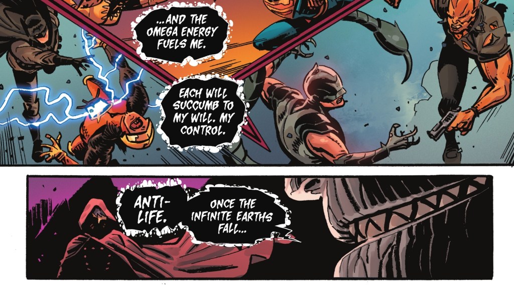 The idea of a crisis coming shouldn’t surprise us. Darkseid has been on a mission to gain more power and control since the beginning of DC All In. He was never just going to stop at conquering the Absolute and Prime universes, but every other realm in the DC multiverse. The details are slim, but we know the Omega Tournaments can generate massive amounts of Omega Energy. The more energy Darkseid gains from these, the greater the threat he’ll become. He very well could end up becoming the most powerful being in the entire Divine Continuum.