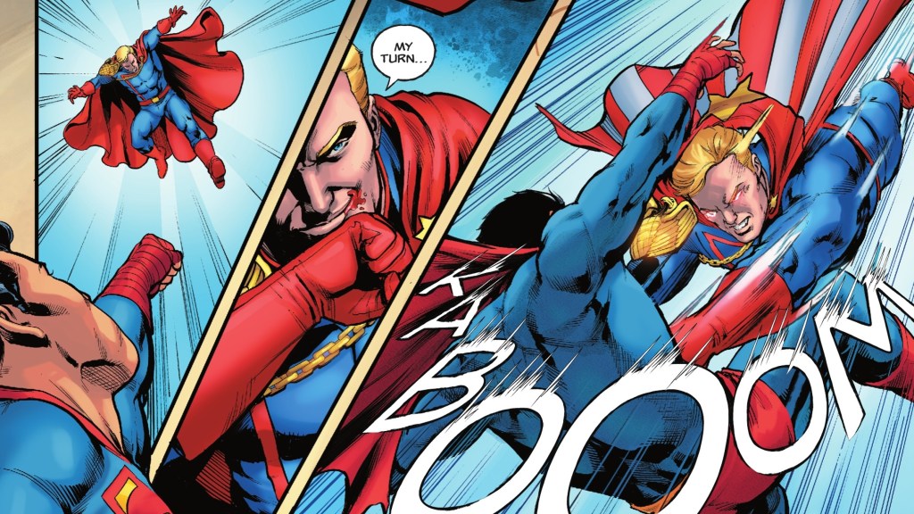 One of the most anticipated characters announced for DC K.O.: Boss Battle #1 was The Boys’ primary antagonist, Homelander. I think we were all excited at this prospect, especially once it became clear that Superman and Homelander were going to duke it out. The gold standard of heroism battling an embodiment of fascism and supremacy? Now that’s something that would really resonate with readers, especially given the current state of the world. And yet, when the big moment finally came and Superman and Homelander throw hands, it’s nowhere near as satisfying or as meaningful as I was hoping for.