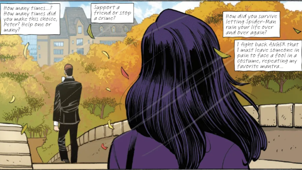 The entirety of issue #16 focuses on Peter’s supporting cast as they deal with his disappearance. J. Jonah Jameson got in contact with Aunt May and asked her to help him reach out to “Peter.” He thinks that something happened to Spider-Man that made the boy cut everyone off, and he wanted May and her new boyfriend to help him set up an intervention. May, in contrast, said that this is what Peter did when he was hurting. She knew him well enough to say that the only thing to do was wait for him to reach out.