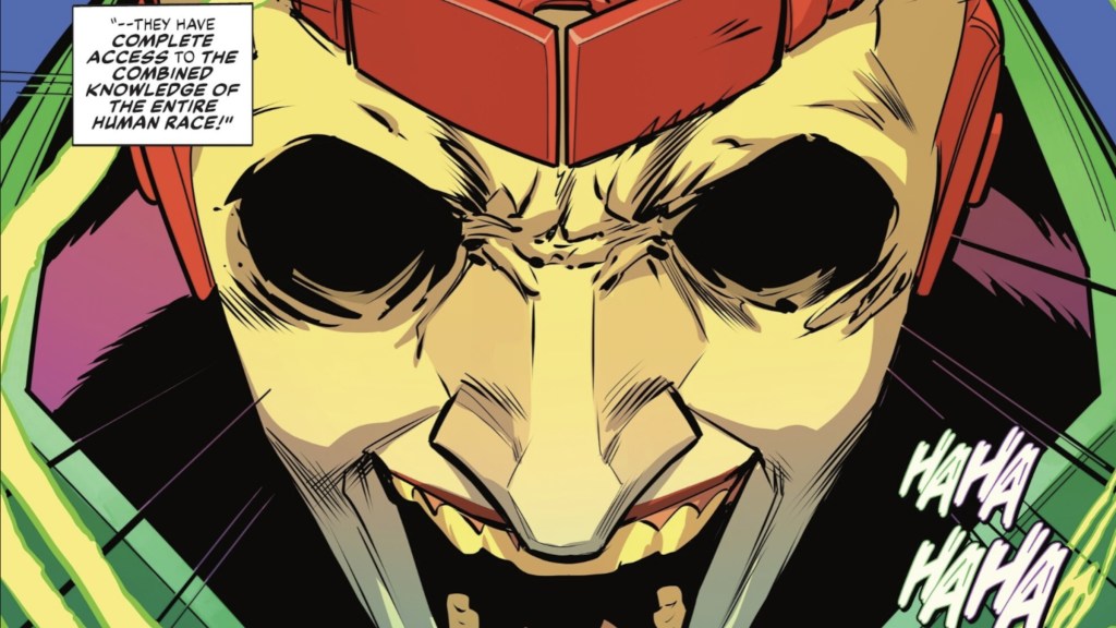 In issue #45, the Joker forcibly recruited Lex Luthor to a heist that he couldn’t pull off on his own. He wanted to rob the Midway City Museum to steal the Absorbascon, a device that granted the wearer all the information in the world. Lex wanted to refuse, but between his pride wanting all the knowledge in the world and Joker trapping him in an immaterial form with a dematerializer, he had no choice but to comply. The two successfully stole the machine, but not without coming into contact with Superman, Batman, and Hawkman, who works at the museum. Joker’s dematerializer exploded in the scuffle, combining him and Lex and rendering Superman and Batman incorporeal.