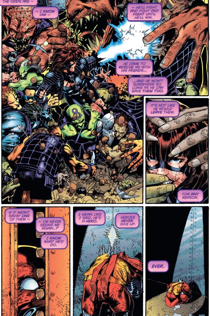 Writer Scott Lobdell also went all out on the book, with the most brutal plot of the entire “Age of Apocalypse”. Basically, the mission to the Core is a suicide mission; a team of mutant kids sneaking into a place that is crucial to Apocalypse’s nation was only ever going to end one way. Guards are everywhere, and danger is around every corner. The team’s plan mostly works, lulling you into a false sense of security; you expect the whole thing to work out. However, that ends quickly in issue #4, as members of the team start dying. Kitty is able to get Illyana out, but no one else in the Core survives, with Colossus allowing the last member of the team to die (although we later learn she survived). It’s a moment that no one could have predicted.