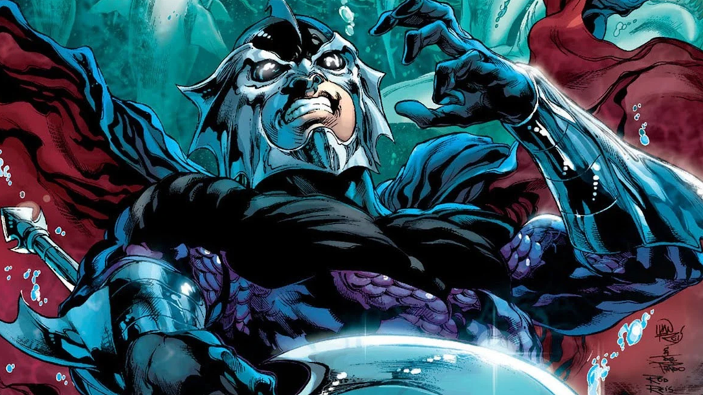 One of Aquamanโs two archenemies, Orm Marius, aka Ocean Master, is the half-brother to the heroic King of Atlantis. Although his exact origin has been retconned multiple times since his first appearance in 1966, what remains constant is that Ocean Master is incredibly jealous of his half-brother and wants to take the throne for himself. Ocean Master also has a deep-seated hatred of humanity who he wants to destroy. Ocean Master employs piracy and terrorism to achieve these goals. Ocean Masterโs crown gives him hydrokinetic powers, and his trident allows him to manipulate the weather. The relationship between Aquaman and Ocean Master is one of the most intense and destructive sibling rivalries in DC Comics.