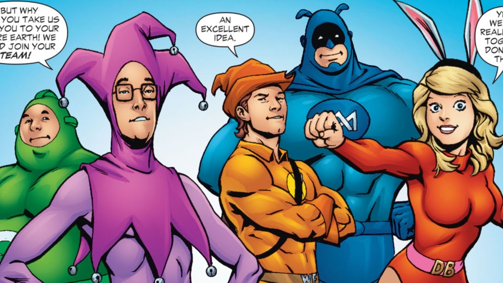 Arguably, the best of all the joke teams in the entire DC Universe. Captain Carrot and the Zoo Crew are a riff on the โfunny animalโ genre, featuring cartoonish parodies of some of DCโs best heroes. Aside from Captain Carrot, thereโs Rubberduck, Pig-Iron, Fastback, Yankee Poodle, and plenty of other animal pun heroes. These guys donโt live in the mainline DC Universe; instead inhabiting Earth-26. While it’s rare to see the entire gang, Captain Carrot frequently assists when multiversal catastrophe strikes, even becoming a member of Justice Incarnate.