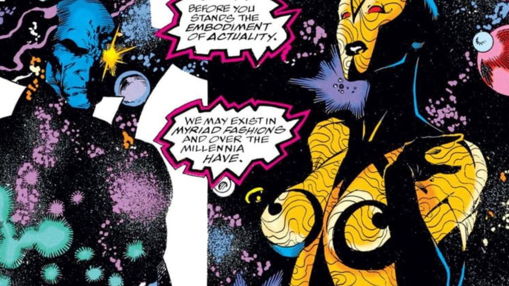 Eternity’s influence extends beyond mere presence — he governs time, destiny, and the metaphysical fabric of creation. When the universe faces collapse, it is Eternity’s state of health that determines survival or oblivion. He serves as both a being and a concept, a reminder that in Marvel’s cosmology, reality breathes and is self-aware.