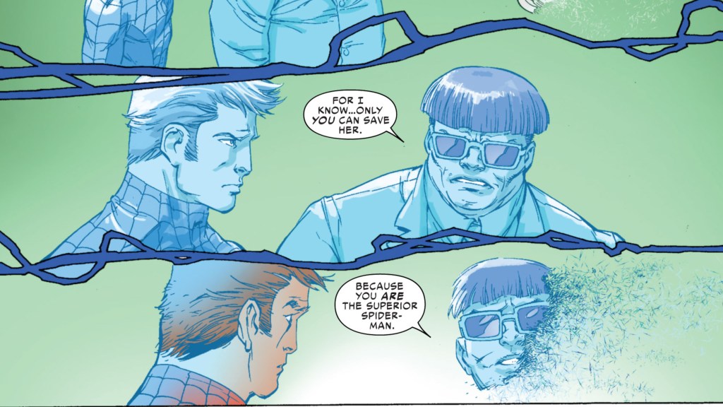 Finally accepting his own inadequacies, Otto realized that he didnโt have what it took to be the hero that New York needed. He admitted that, once and for all, Peter really was the superior Spider-Man, but for Peter to save the day, he couldnโt have anyone slowing him down. Otto wiped himself from Peterโs mind entirely, giving up his life so that Peter could become Spider-Man once again and save the day. It was a heartwrenching moment and the perfect finale to Ottoโs character arc. Personally, this should have been his final appearance and true death.