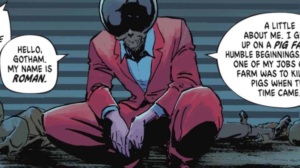Roman Sionis, aka Black Mask, has always been one of the sickest people in Batmanโs coterie of supervillains. But if you can believe it, Black Mask is worse. Here, Black Mask leads the Party Animals, a group of gangs that Sionis deploys across the world to destabilize cities so that wealthy people can profit from the aftermath. Sioinis isnโt simply a mob boss in the Absolute Universe; heโs the leader of a small army that excels in destruction, torture, and death. Black Mask never held back and ended up teaching Bruce how brutal the Absolute Universe really is