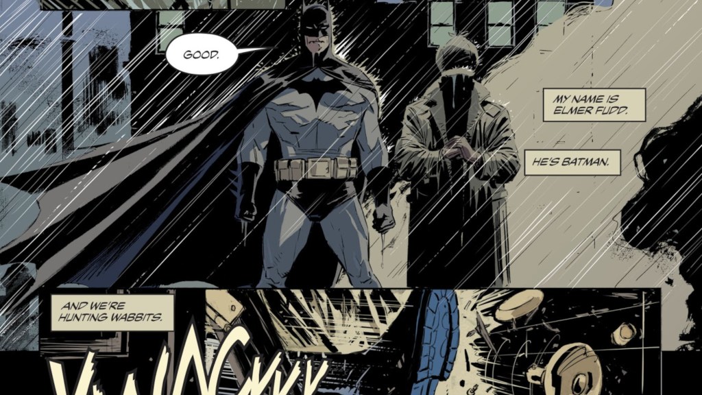 Hitman Elmer Fudd hunting and eventually working with Batman to solve the murder of a woman they both love is legitimately the greatest plot description Iโve ever heard. This comic knows exactly what it is and what makes its premise funny, and masterfully takes itself just seriously enough to be perfect. Batman and Elmer Fudd deserve to go on a hundred more adventures together, and I can confidently say that this is the most insane Batman crossover of all time.