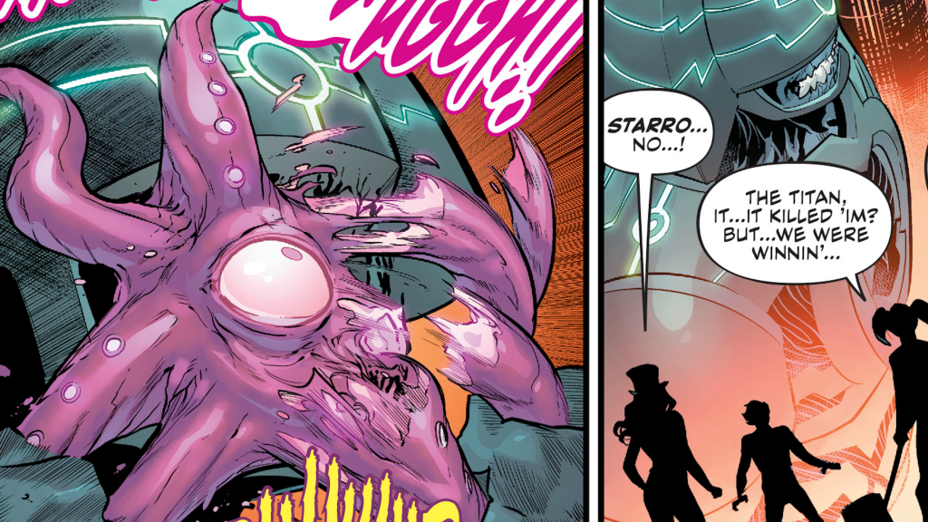 One of the most feared beings in the universe, Starro the Conqueror, lived to see all life in the universe under his control. However, even a giant tyrannical starfish can be a hero. In Justice League: No Justice, heroes and villains alike join forces to defeat all-powerful cosmic entities known as the Omega Titans. After some motivation from Martian Manhunter, Starro uses his telepathy to help calm down billions of lifeforms as they were being evacuated. Once all the people were safe, Starro tried to grab onto the face of one of the Omega Titans to force it to stop its rampage. Unfortunately, the Omega Titan proved to be too powerful as it ripped Starro apart. Although it was unsuccessful, Starro died protecting others.
