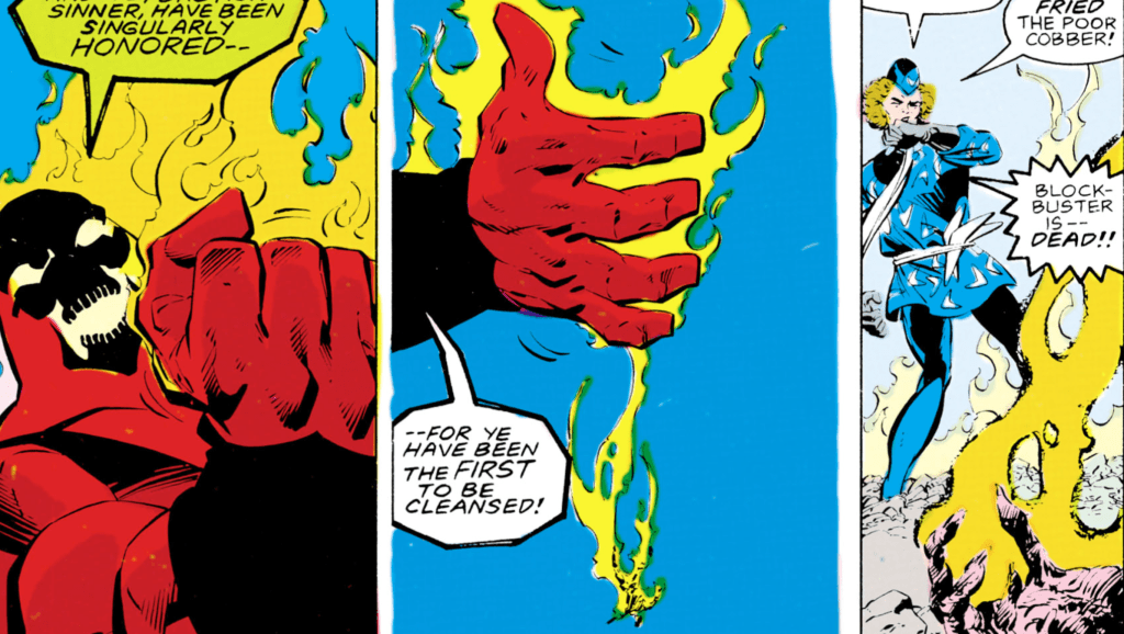 Although the villain Mark Desmond, aka Blockbuster, is incredibly strong, he was the very first member of the Suicide Squad to die. For the Squadโ€™s debut mission, they were tasked to stop the rampage of Brimstone, a giant ever-burning cyber-demon from Apokolips created to serve Darkseid. Standing several stories tall, Brimstone towered over the Suicide Squad. With no effort, Brimstone picked up Blockbuster like a small toy and began simultaneously crushing and burning him alive. When Brimstone finally let go, Blockbusterโ€™s mangled, flaming corpse crashed to the ground. His death made one thing painfully clear: any member of the Suicide Squad could die at any given moment.