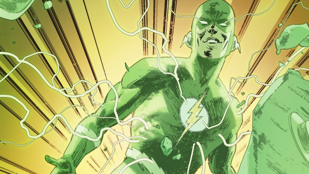 Barry Allan has been out of commission ever since the end of Absolute Power, but that doesnโt mean heโs any less heroic. In Green Lantern #31, Barry has to testify at a trial and is being targeted by some very powerful and dangerous criminals, so he calls his buddy Hal to help him. In the middle of all the chaos, Hal gives Barry a hand by making him a construct suit and giving him temporary super-speed. It doesnโt last, but it really is cool to see Barry back in action as a speedster.