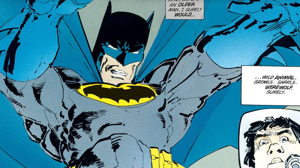 When the miniseries begins, Batman has been retired for 10 years following Jason Todd’s death. In his absence, Gotham has become more crime-ridden than ever, and many people start to believe that the Dark Knight is just a myth. Eventually, after seeing all the suffering in the streets, the aging Bruce Wayne decides that enough is enough. At first, only glimpses are offered of a shrouded figure striking criminals in the dead of night, with news reporters surmising that the Caped Crusader might be back. This epic buildup concludes with two veteran cops seeing Batman leaping through the air, ready to take back the city he loves from the crooks who have festered in its streets.