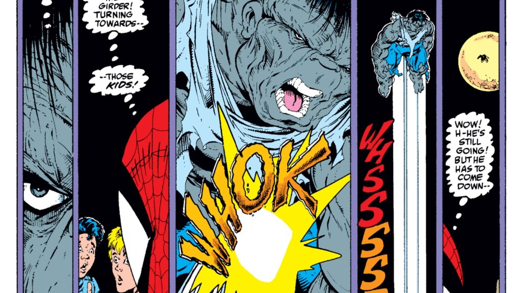 Hulk might be the strongest there is, but he met his match when he faced off against Peter in The Amazing Spider-Man #328. Hulkโs rampage brought him to Spideyโs backyard, and Hulk is ready to do some damage. But thankfully, Peterโs been buffed by some cosmic powers, enabling him to go toe-to-toe with the leviathan. The twoโs fight is interrupted by two kids, and before the Hulk can even lay a hand on them, Spider-Man punches Hulk so hard he actually manages to leave the atmosphere. Thankfully, he rescued Hulk, who repaid Peterโs generosity by leaving New York.