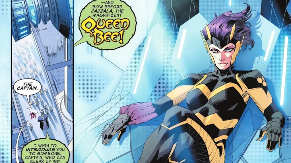 A fearsome intergalactic conqueror, Zazzala, aka Queen Bee, commands a swarm of warships to take over planets. Queen Bee is a terrifying villain even without her armies, as she possesses multiple potent abilities that make her a match for the Justice League. She has hypnotic pollen, which can brainwash numerous people at once, and can control bees telepathically. Sheโ€™s also strong enough to contend with Wonder Woman and Big Barda. In addition to her physical abilities, Queen Beeโ€™s wrist-mounted stinger guns can paralyze and kill people. The venom of these stingers is so potent that Big Barda and Plastic Man were paralyzed. While she may not be the most popular villain, Queen Bee is still one of the most powerful monarchs in the galaxy.
