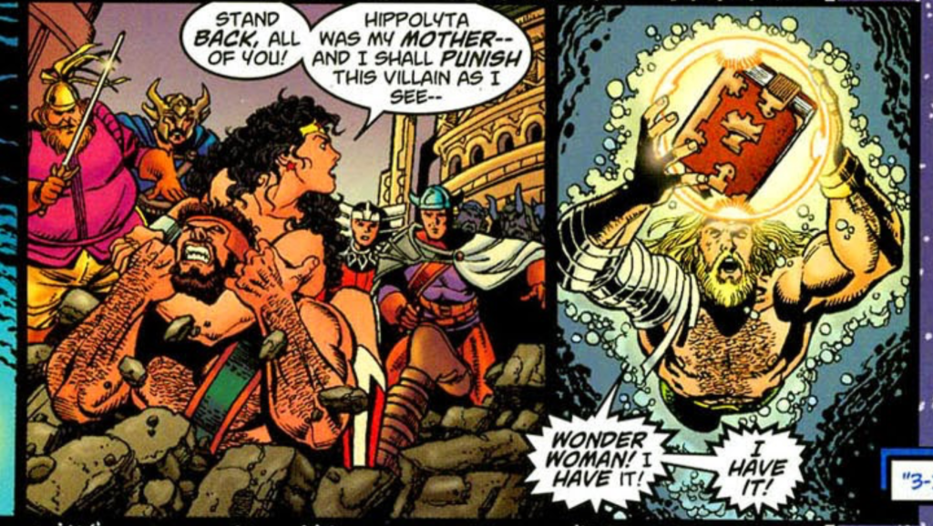 In DC Comics, Hercules is a cruel villain who abuses and enslaves the Amazons, including Wonder Womanโs mother Hippolyta. So naturally, when Diana sees the Hercules from Marvel Comics during the JLA/Avengers crossover event, she immediately assumes that he is the same monster who hurt her people. When the Justice League and Avengers are in a race to collect mystical artifacts, Diana jumps and begins overwhelming the Prince of Power, who had once lifted a universe. The Princess of Themyscira pummels and wrestles Hercules while accusing him of attacking the Amazons, something this version of Hercules never did. Eventually, after Aquaman acquires the latest artifact, Wonder Woman discards the vanquished demigod.