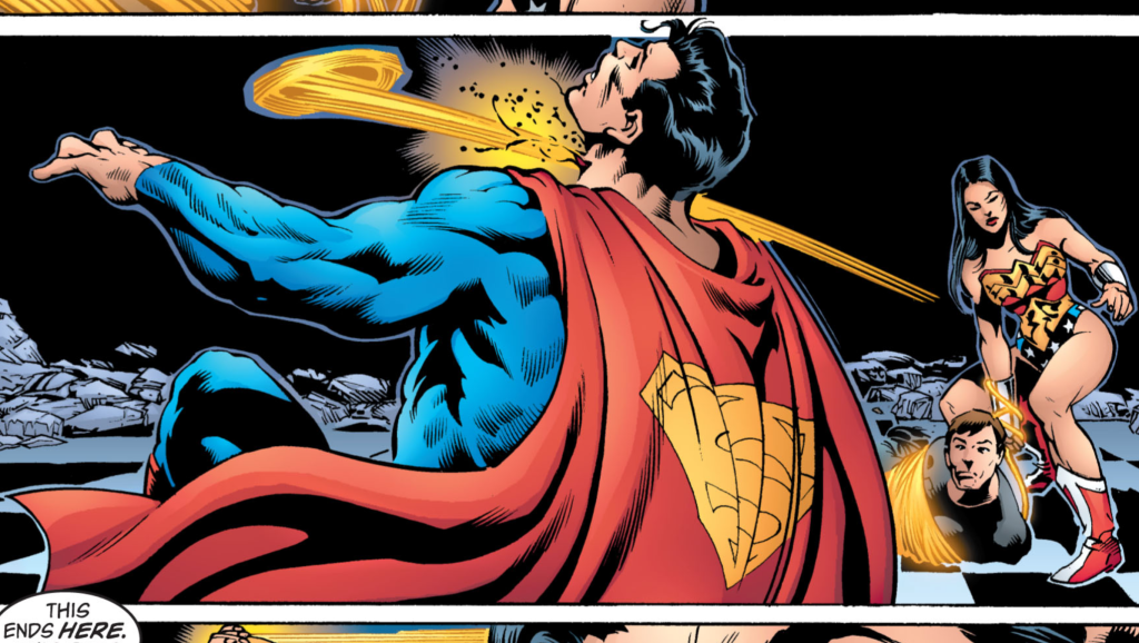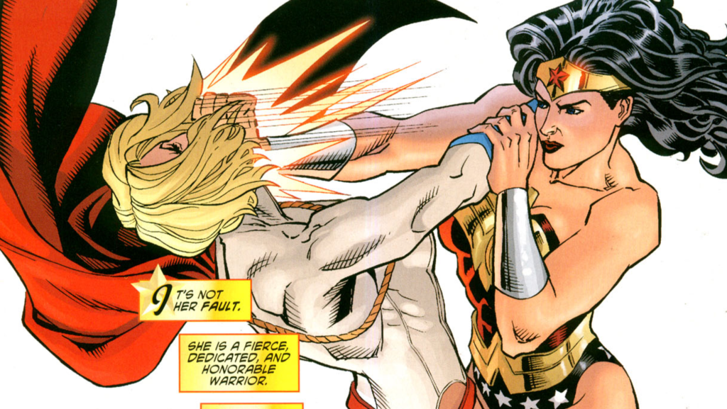 Superman is defined by his infinite power, which is so dangerous that he must restrain himself from destroying the world by accident. However, in the storyline โSacrifice,โ the telepath Maxwell Lord turns Superman into a brainwashed puppet who is commanded to kill Wonder Woman. Unrestrained by his morals, Superman attacks Diana with his full power. Their vicious battle takes them to the sun and back in a few seconds, shaking the Earth. Even after Superman breaks her wrist, Diana keeps getting back up and knocking him down into the dirt. Eventually, she manages to temporarily stun the brainwashed Superman by slitting his throat with her tiara. This moment gives her the chance to ultimately kill Lord, freeing Superman from his mind control.