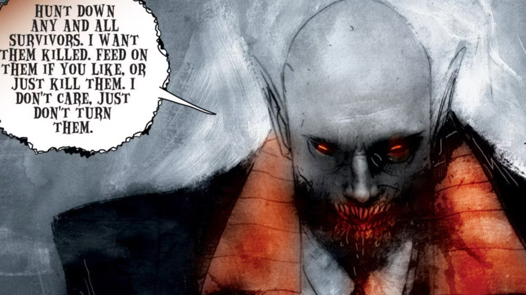 IDW’s mini-series 30 Days of Night is a chilling tale in which vampires attack the town of Barrow, Alaska, where the sun doesn’t rise for an entire month. After a group of vampires led by Marlow Roderick begin slaughtering the townspeople indiscriminately, the self-proclaimed “Father of all Vampires,” Vincente, arrives. Furious at his underling for his brash actions, Vincente tears Roderick apart. Vincente then orders his followers to kill all the remaining townspeople so that the existence of vampires could remain a secret. Vincente is a cruel and calculating villain who has killed countless people over his millennia-long lifespan. Although the heroic Sheriff Olemaun eventually kills him, Vincente has made a lasting impression as the bloodthirsty head vampire.