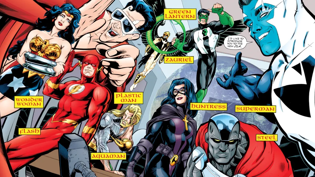 Grant Morrisonโs run on JLA revolutionized the team. They were reimagined through the lens of the Greek Pantheon, with each hero embodying a different god, and this perspective shines clearly in how the League acted and who they fought. Not only did this run iteration see the return of the Big Seven for the first time in years, but the addition of new members in Plastic Man, Big Barda, Oracle, Steel, Orion, and Zauriel. Green Arrow, Aztek, and Tomorrow Woman all served as temporary members. While this run started by bringing the team back to basics, it also refocused them to only deal with the largest, most powerful threats that the world faced.ย