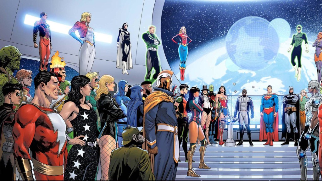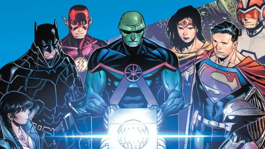 This version of the team was formed to fight against the return of the Legion of Doom, who sought to free Perpetua from her prison. At its peak, its membership included the Big Seven, except replacing Aquaman with Mera, alongside Hawgirl, Starman, Shayne J’onzz, Jarro, and the World Forger. The World Forger alone is one of the most powerful people in all of DC, being the one responsible for creating every alternate reality. Hawkgirl was also enhanced with Nyh Metal wings, and she and Martian Manhunterโs son Shayne had all of their powers together. And then there was Jarro, who was a baby Starro that grew to match the originalโs power. This team was truly absurd and only surpassed by one other in terms of raw strength.