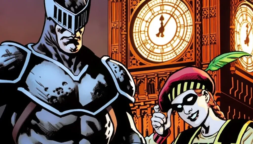 The Knight and Squire are a British crime fighting duo who in their initial incarnation were inspired by the exploits of Batman and Robin. The original duo were the father and son team Percy and Cyril Sheldrake. Percy possessed a magical suit of armor that increased his durability. After the death of his father, Cyril became the new Knight and took in a young orphan girl named Beryl Hutchinson. Beryl became the new Squire. The pair defended Britain for many years and became members of Batman Incorporated and the Batmen of all Nations. Cyril eventually died in the line of duty, and Beryl inherited the mantle of her mentor.