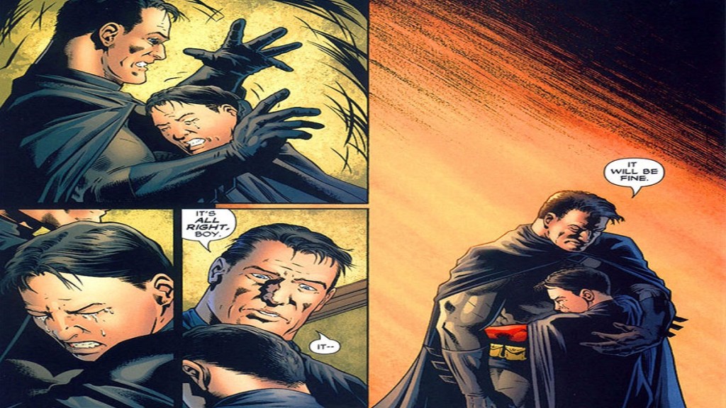 Tim Drakeโs dad was unfortunately killed by Captain Boomerang in the atrocious Identity Crisis comic, leaving Tim an orphan. Bruce immediately stepped up to care for the young Robin, and let him stay in the manor. In Batman #654, Bruce talks to Tim about living in the Manor permanently. Importantly, in order to do so legally, Bruce would have to adopt Tim as his son. Instead of just doing it, he talks to Tim and asks what he wants. Bruce makes it clear that he doesnโt want to replace Timโs father, but wants to support Tim in whatever way Tim wants him to. Tim breaks down and hugs Bruce, to which he responds by hugging back and telling him everything will be okay. Itโs a beautiful moment, as all of the scenes of Batman adopting one of his kids are.