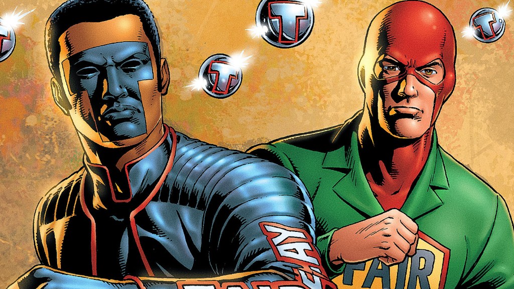 This team is unlike any other. The four members โ Mr. Terrific, Plastic Man, Phantom Girl, and Metamorpho โ are bonded together after a tragic accident, and must remain in close proximity to each other. If they separate, they risk losing their powers and their lives. This unique situation forces them to develop an asymmetrical fighting style that requires a high degree of trust and harmony, something that doesn’t come naturally to all the members. Throughout their adventures, with more room to improvise than he would have on a team like the JSA, Mr. Terrific shines in his roles as leader and benefactor,