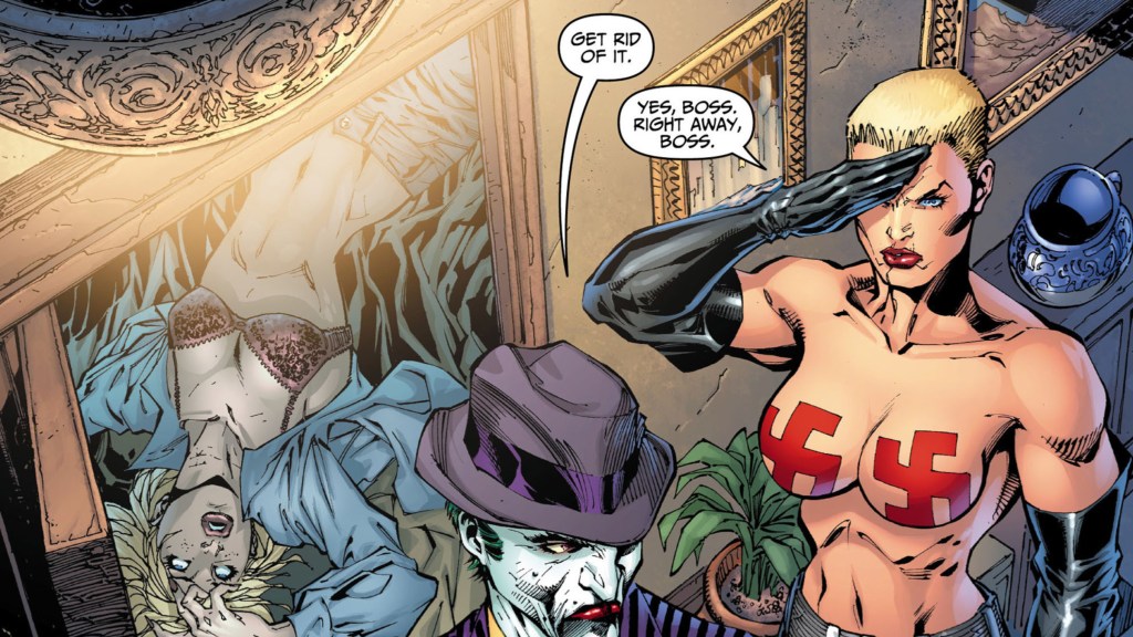 Do I need to explain why this character should be forgotten, but never can be? Bruno first appeared in The Dark Knight Returns #3, and is just about the most Frank Miller character you can imagine. She’s a literal Neo-Nazi who worked for the Joker, and covered her breasts and her bare daryaire with the worst symbol you could possibly choose. She doesn’t have much of a personality beyond being a Nazi, but as much as she should be forgotten as Joker’s random assistant from Frank Miller’s works, she’s so darn weird that she sticks out. She was designed to make you do a double or triple take, and she certainly does. Like, seriously, what kind of design is this?
