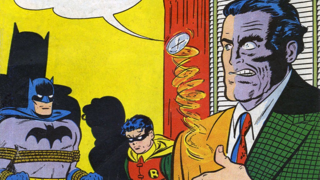 No, not the original Two-Face Harvey Dent, or even his butler who once pretended to be Harvey to fill the role, but the third Two-Face. Not many people know about this character, but those who do can never forget him, because his origin is absurd, even by Golden Age standards. Introduced in Batman (1940) #68, Paul Sloane was an actor hired to play Two-Face in a movie about him. However, a stunt operator got jealous that his girlfriend had a crush on Sloane, so in perfectly reasonable fashion, he switched out the water for real acid in the famous scene where Two-Face was disfigured.