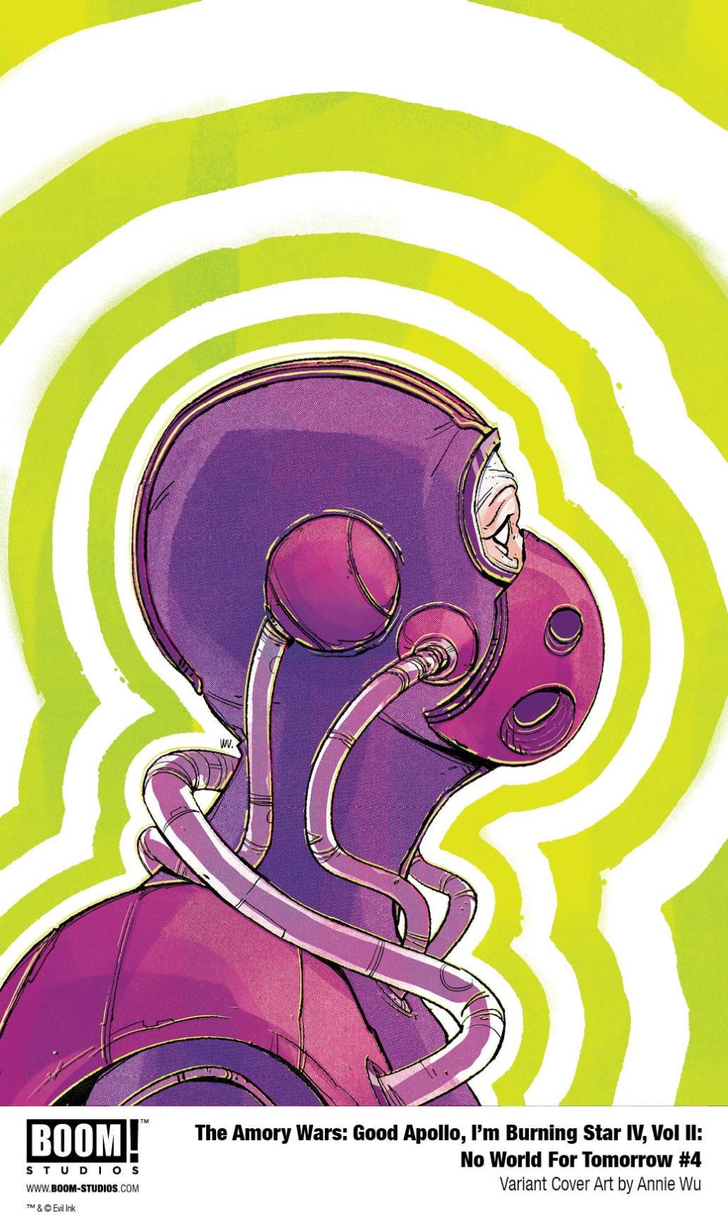 No World For Tomorrow #4 will feature a main cover by Gianluca Gugliotta as well as variant covers by Jonathan Wayshak (The Scumbag) and Annie Wu (Two Graves). The Amory Wars: Good Apollo, I’m Burning Star IV (Vol. II) โ No World For Tomorrow #4 will hit comic stores on August 14th, and is available for pre-order at your local comic store and digital storefronts like Kindle, iBooks, and Google Play.