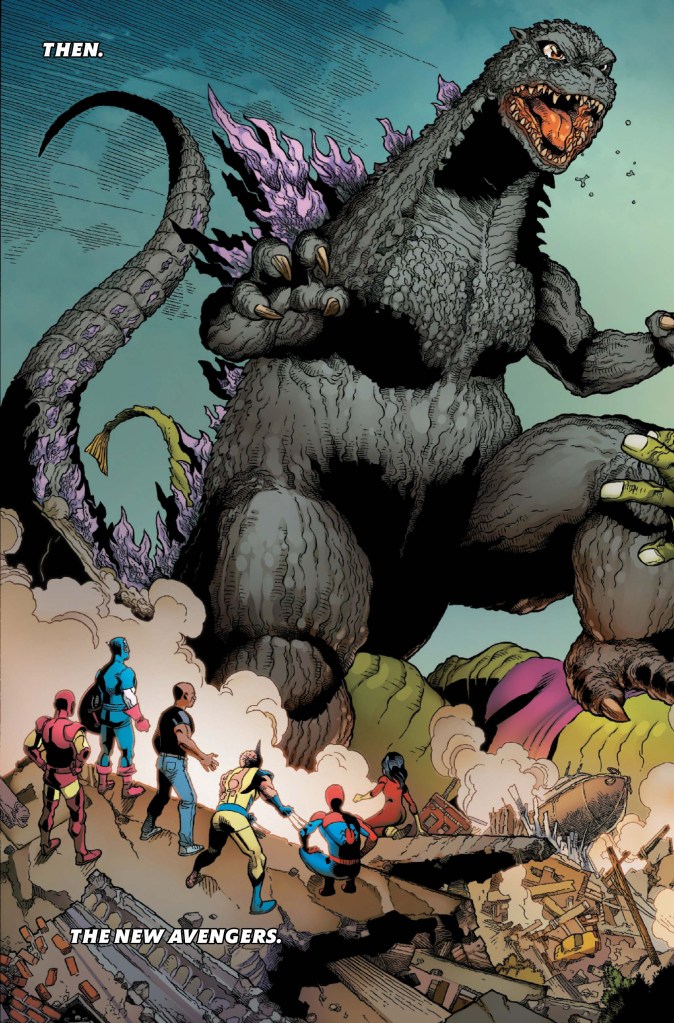 Earth’s Mightiest Heroes are about to face Earth’s Mightiest Kaiju. The Marvel Universe and the world of Godzilla are finally crossing over, with the King of Monsters meeting different Marvel heroes across various time periods. We began in the ’60s with the Fantastic Four, moving up to Hulk in the ’70s, Spider-Man in the ’80s, and the X-Men in the ’90s. The 21st century is ripe for potential Godzilla crossovers, but the heroes chosen are the Avengers — specifically, the New Avengers. The clash between the two franchises will also bring another familiar Marvel monster into the mix.