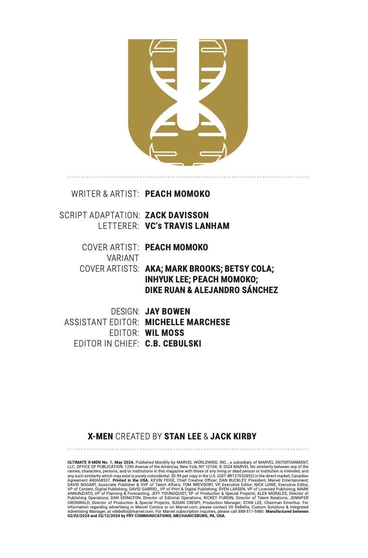 Ultimate X-Men #1 Credits