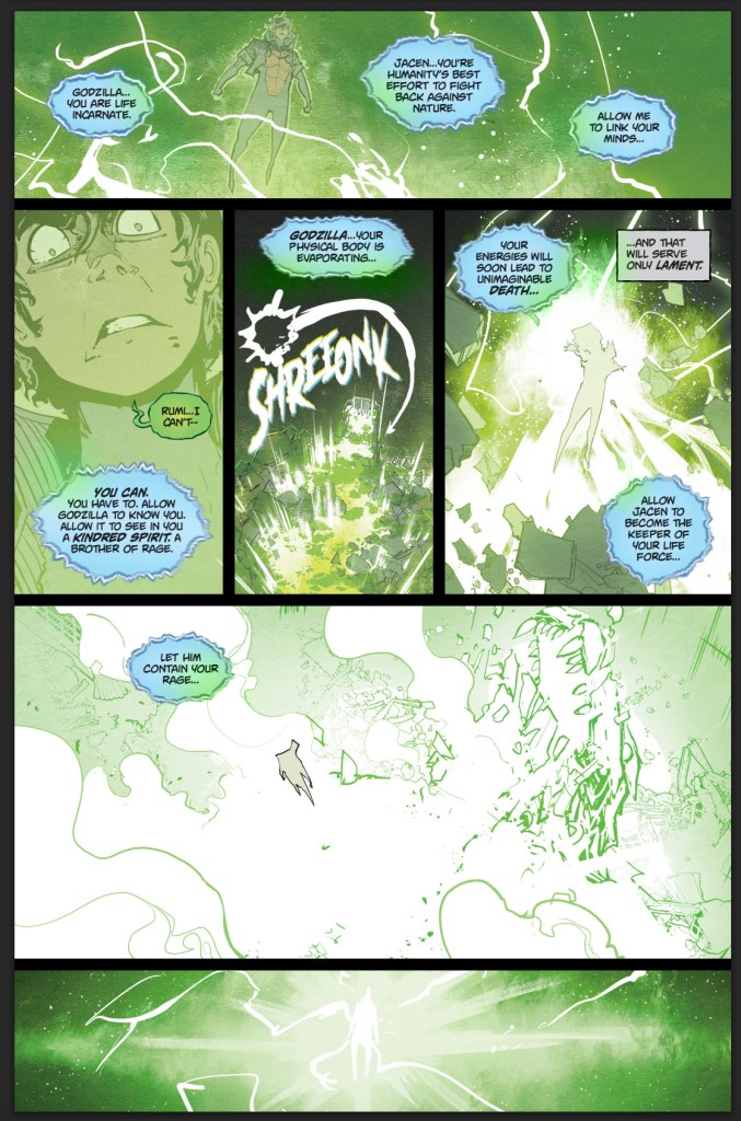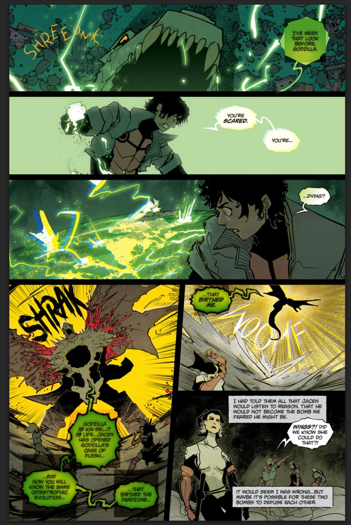 So, what does an all kai-sei energy and all rage Godzilla look like? Godzilla #6 ends in a somewhat peaceful place after the battle. Las Vegas isn’t totally destroyed and the world didn’t end despite Godzilla’s body being destroyed. That said, bigger challenges are ahead. Godzilla #7 is already teasing that Jacen isn’t going to be able to contain all the energy that was once in the body of the King of the Monsters and we’ve already gotten a look at just how epic this new Kai-Sei Energy form is going to be. It’s set to be a wild ride.