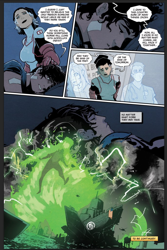“Comics should be insane,” Williams told us previously. “And personally, I can’t think of a more insane way to end arc 1 of the first ongoing Godzilla series in over a decade than [the fall of Godzilla]. For anyone waiting to check out this series — now’s the time to jump on. We’re delivering a Godzilla unlike any other and finally making good on our promise to showcase ‘a boy with the power of Godzilla.’”