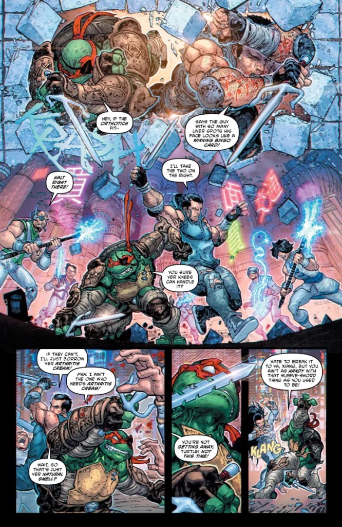 In fact, the best parts of the issue are when the Turtles are simply discussing Splinter’s actions amongst themselves, and it’s interesting to see where each Turtle lands on that issue. There are some genuine surprises in that regard, especially with Michelangelo and Raphael, who end up on either extreme of the issue as opposed to Leonardo or Donatello. That discussion was so good I would have easily read that debate for 10 more pages.