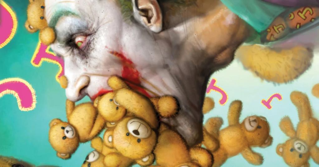 In Knight Terrors: Joker #2 we return to Joker’s nightmare reality where Batman has died (randomly) and left Joker living on as “Johann,” a middle-management executive of Wayne Enterprises, who lives with his Joker-fied wife Lena and son Albert.ย
