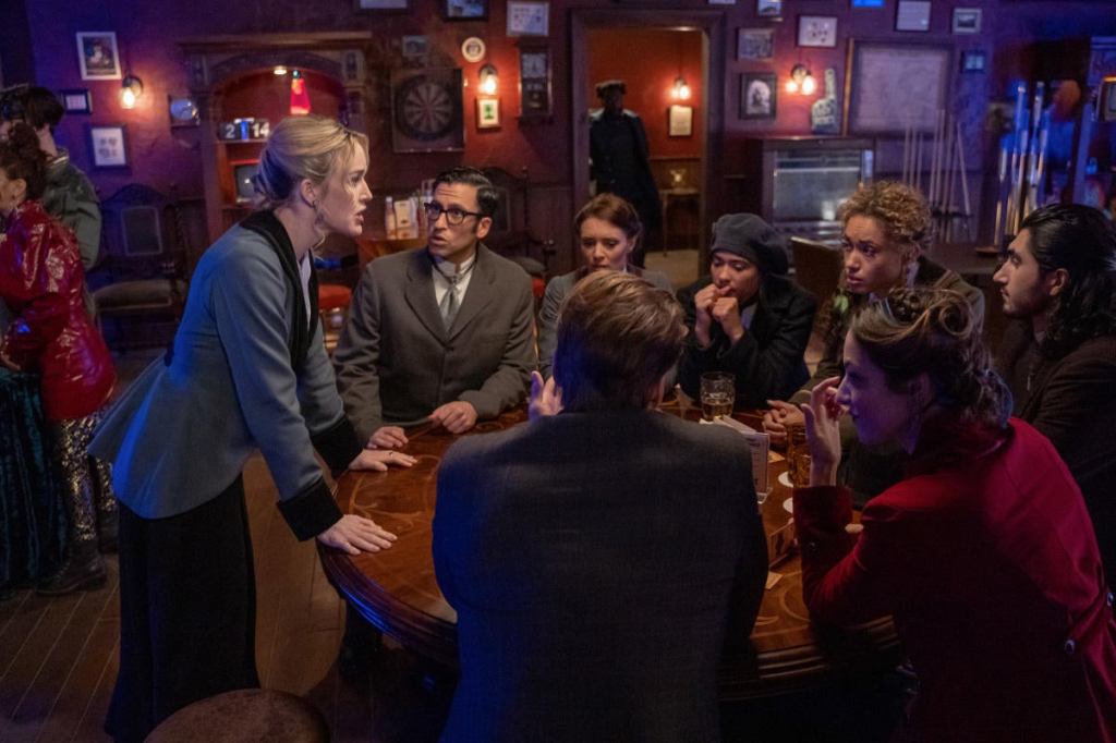 The CW has released photos for “The Fixed Point”, the tenth episode of DC’s Legends of Tomorrow‘s seventh season set to air on January 26th. The episode will be directed by Legends alum Maisie Richardson-Sellers and will see the team find themselves at a bar for time-travelers that turns out to be a “fixed point”. The episode will also see the team getting tired of being chased by the evil A.I. and robo-soldiers they’ve been dealing with this season as well as Ava hearing of Gwyn’s plan to save his boyfriend, forcing her to remind him about just how that could go badly.ย
