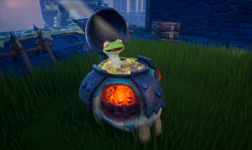 Awaysis is a physics-based co-op dungeon brawler from 17-BIT, the studio behind Skulls of the Shogun and GALAK-Z, set in a lush floating paradise under siege from a Dark Lord and his army of adorably goofy Grimlins. You play as one of a band of small, unlikely critters on a mission to ascend the floating mountain, restore the world’s water supply, and… convince a frog to get out of a hot tub. It wears its whimsy and silliness proudly, and the colorful, vibrant world it’s built is immediately inviting. The environments have a warm, storybook quality that makes you want to explore every corner of them.