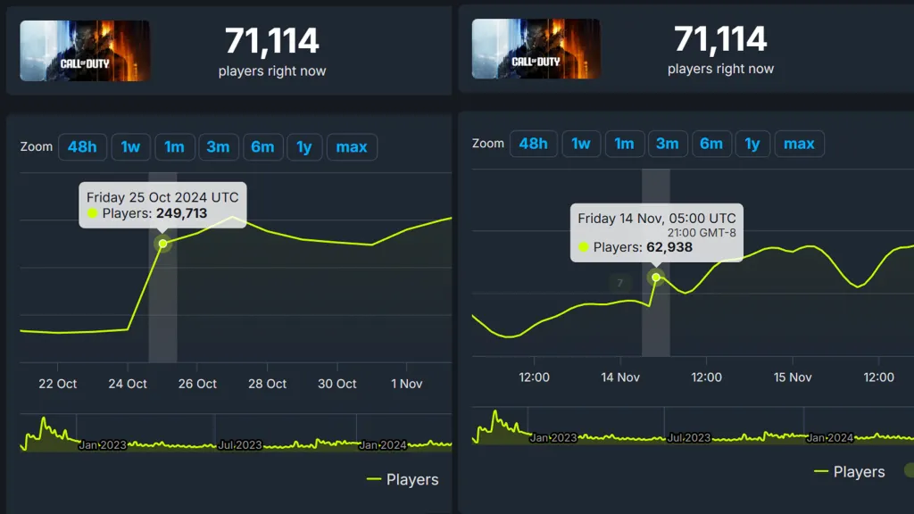 Itโs not just limited to player counts, either. United Kingdom sales for Black Ops 7โs physical versions were also down 61% when compared to Black Ops 6, and the official Call of Duty social media accounts posted vaguely about Black Ops 7 without calling out any milestones, a likely sign of it not breaking even the most obscure of records. Even Google searches for Black Ops 6 were much higher during its launch when compared to Black Ops 7.