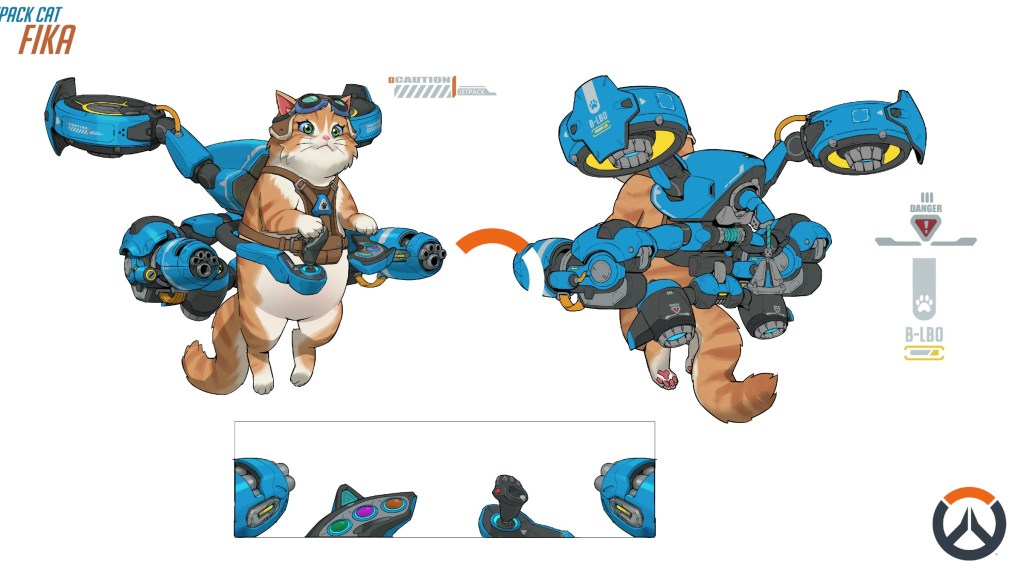 Where Jetpack Cat Fits Into Overwatch Lore: As fans may have guessed, Jetpack Cat will have direct ties to Brigitte when she launches in the game. What was teased to us by the Overwatch team was that Brig was tinkering in her workshop and found a stray cat, which she named Fika. The arrival of Fika coincided with Brig working on a version of Reinhardt’s jet propulsion system that is omnidirectional. Though she’s only been able to get the tech to work on a small scale, that means the only thing capable of using it are the cats that have been around the workshop, and somehow, Fika is very good at the controls.
