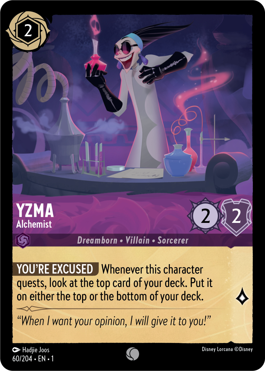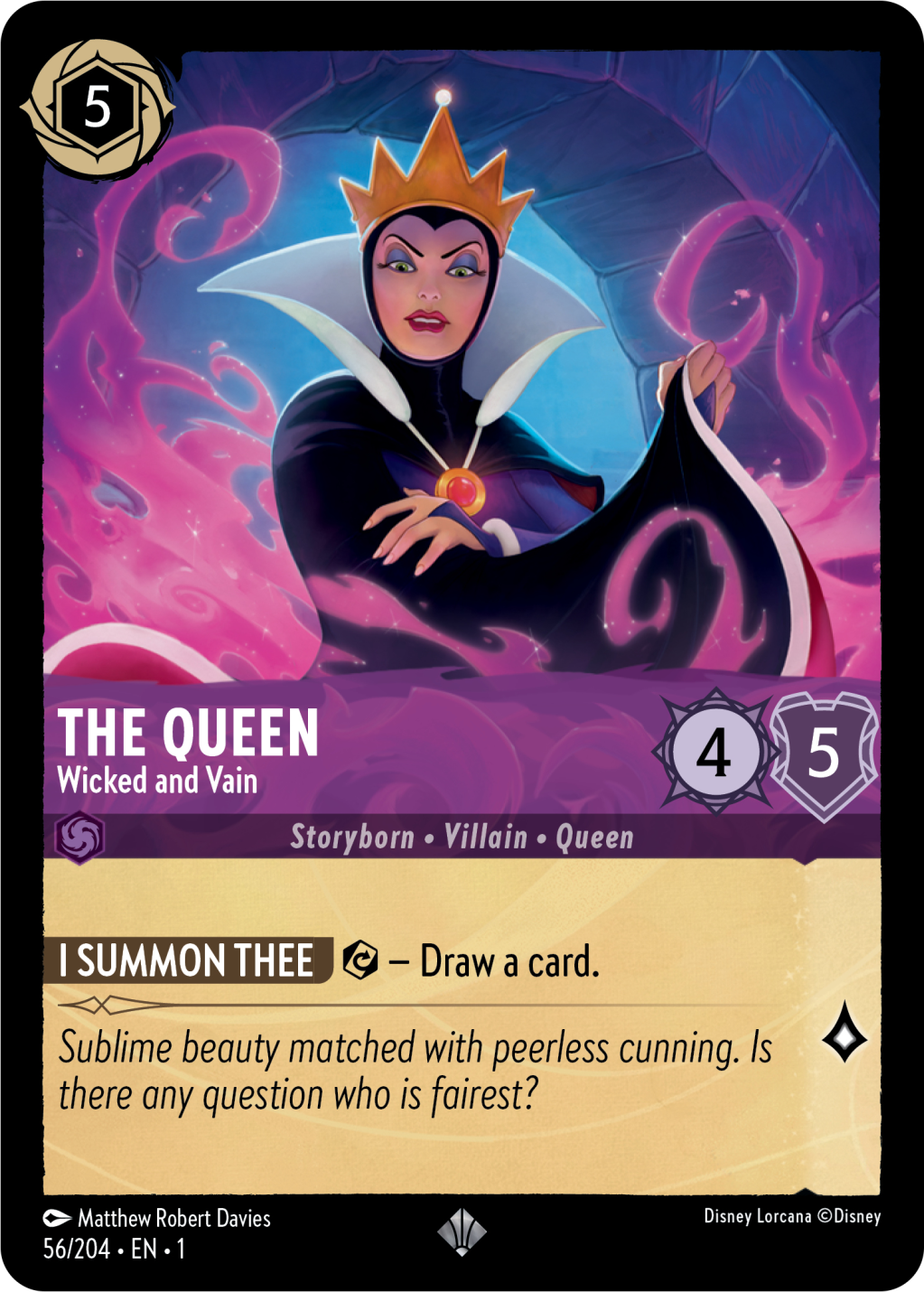 In the First Chapter set, Amethyst Ink cards seems to be the Sorcerer-focused color. The cards in the set appear to be a bit more technical than other cards, with many characters having access to some sort of magical ability or power. The two Legendary Amethyst Ink cards in First Chapter are Elsa, Queen of Winter and Ursula, Power Hungry. Elsa’s Deep Freeze ability locks down two opposing characters on the turn she’s play, while Ursula steals Lore from other players and provides a way to draw cards in addition to having a strong Lore count.