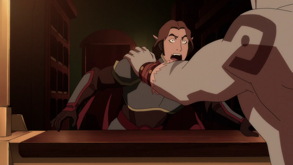 The Legend of Vox Machina features a familiar face in every episode, although newcomers to the franchise might not recognize him. While the new Prime Video series focuses on the bawdy and resourceful adventuring group Vox Machina, viewers may have noticed that another character keeps reappearing in every episode as well. This long-haired male elf has appeared in each episode, occasionally suffering a grisly fate in the process. If you’ve watched Critical Role, the popular web series that The Legend of Vox Machina is adapted from, you probably recognize that the animators have put cast member Matt Mercer in every episode, a nod to the role that Mercer plays in the series itself. Mercer has appeared as an in-show character in all six episodes to date, either as a guard, a zombie, or as a (doomed) resistance member wearing an eyepatch. You can see a few of his appearances throughout the series below:ย