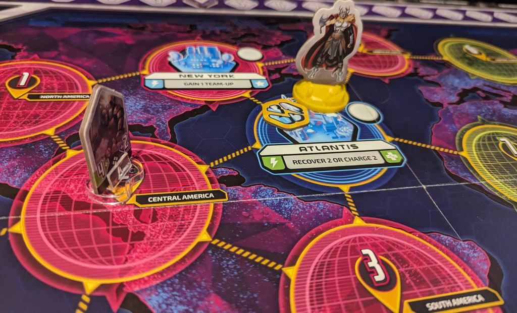 You’ll get more out of the battle experience if you play with at least four players, as more henchmen activate at four players, and that in turn allows you to fulfill some of the missions activated by defeating enemies on the board more quickly. You’re consistently trying to complete missions to keep the threat from going over the current limit, but you’ll still want to take some actions and unlock support, team-up, and hero missions to get the most out of the game.ย