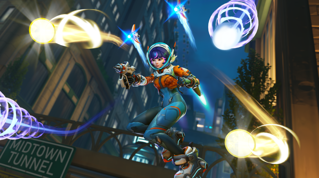 “Generally, when we make a hero, we’re trying to deliver a fantasy about playing this character. She’s kind of this flying astronaut character from Mars, and so her abilities and her design and everything represent this fantasy of the hero. It also allows a bit of player choice. So she can speed up heroes similar to Lucio… and now (players) have a hero that can do a similar thing as he does, but obviously he does it slightly better than her, but is a bit of choice for the players when it comes to some of the overlapping abilities. We definitely have no shortage of crazy abilities, but this one was about the fantasy of this fighter pilot-type astronaut hero.”